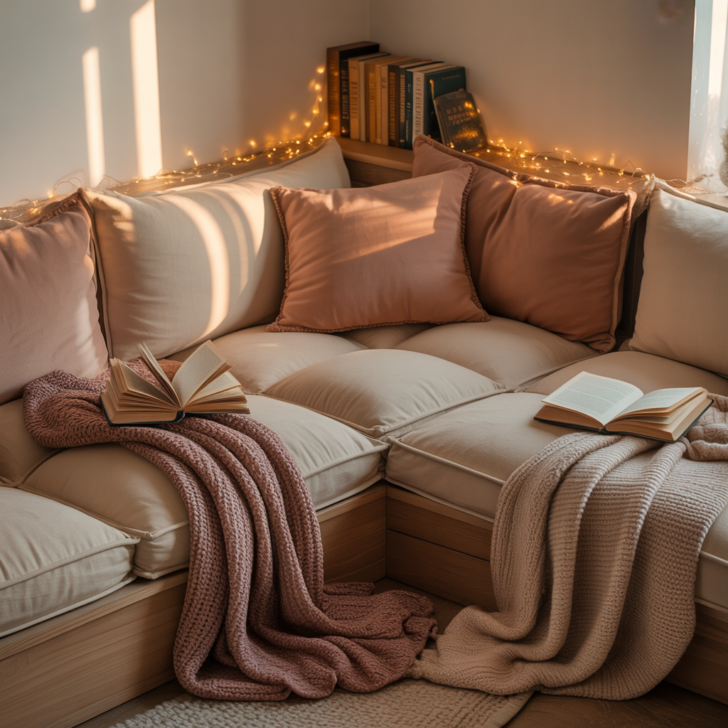 Parents love how flexible this setup is. The cushions can be moved around for movie nights, playdates, or extra seating. It encourages independent reading while keeping the room soft and inviting. Add fairy lights or a small canopy above to enhance the magical vibe and make the space feel extra special.