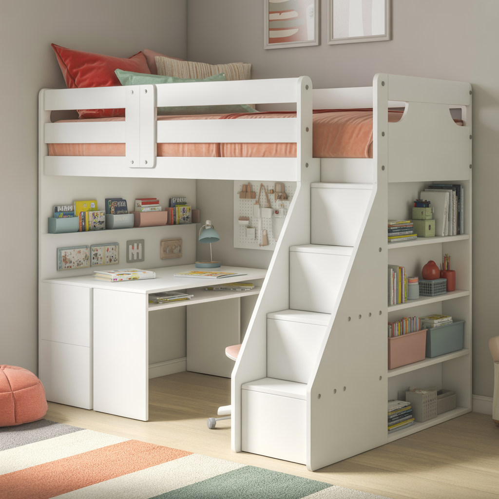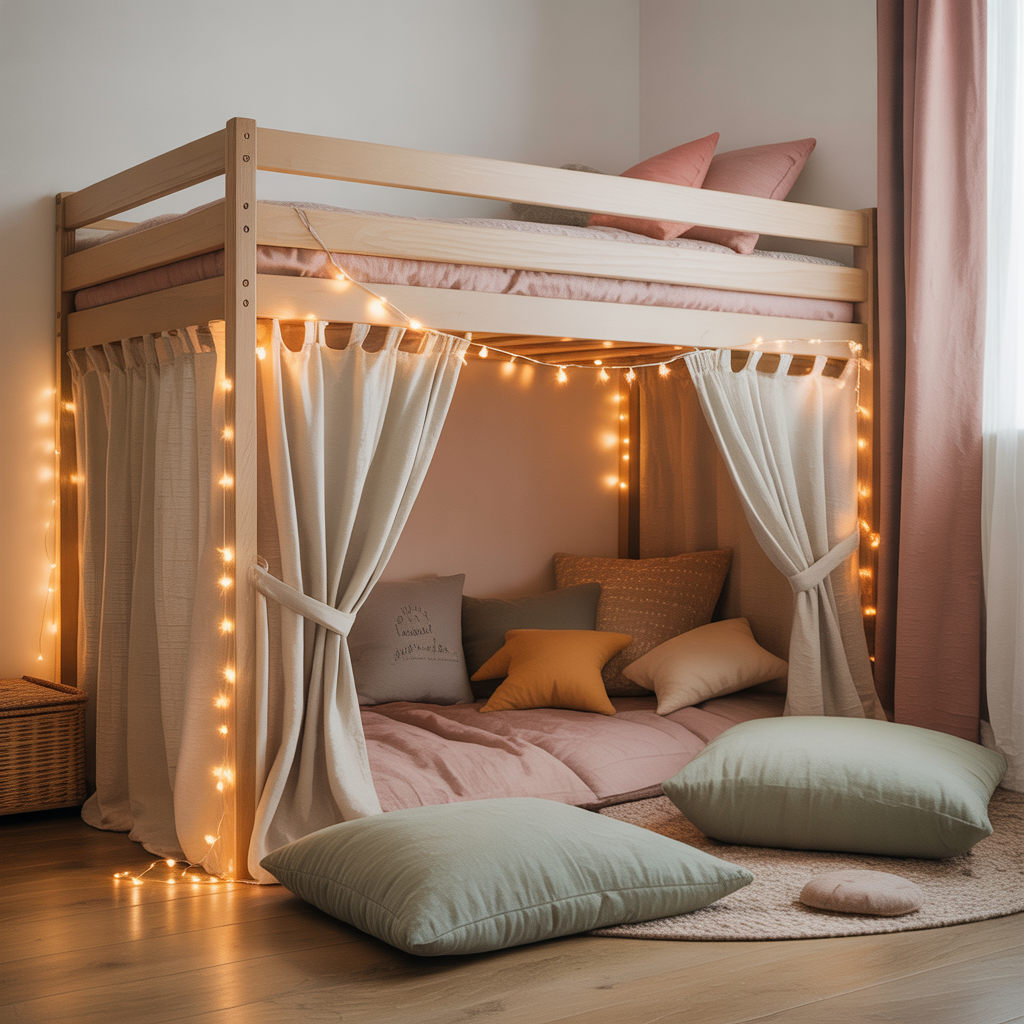 Underneath the lofted version, you can create a reading nook, play kitchen area, or mini study desk. Add themed curtains to transform it into a castle, spaceship, or jungle hideout. Parents love how customizable this bed is, especially for Pinterest-inspired room makeovers. It’s playful, space-saving, and incredibly practical all at once.