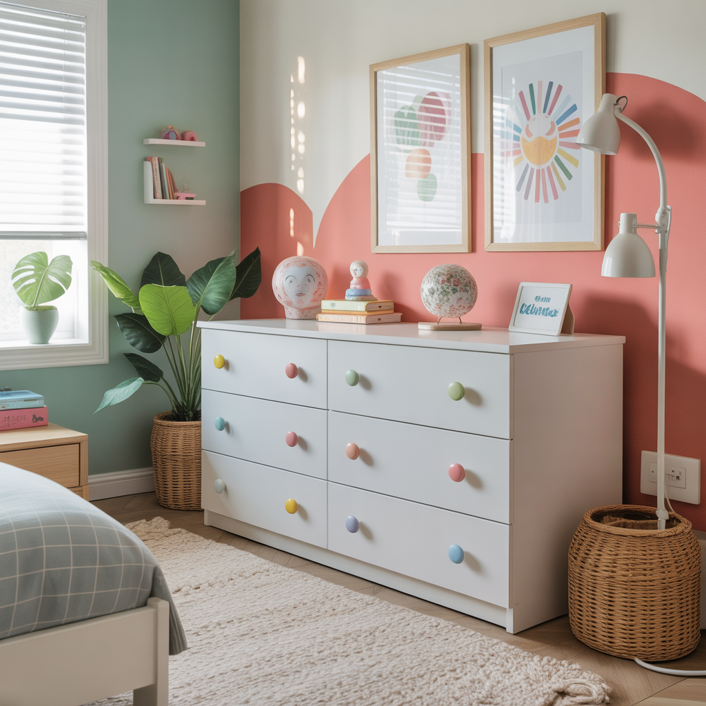 Beyond style, the MALM dresser is practical and long-lasting. As your child grows, you can swap out decorative details to make the piece feel more mature. It transitions seamlessly from toddler years to teenage spaces without looking outdated. For safety, parents can anchor it securely to the wall, giving peace of mind while maintaining functionality. It’s one of those smart investments that evolves with your family’s needs while staying Pinterest-worthy at every stage.
