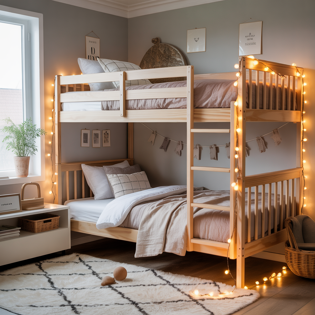 Parents love MYDAL because it’s sturdy and customizable. You can paint it to match your theme or leave it natural for a timeless look. The bottom bunk can even transform into a daybed as kids grow older. With limited floor space in many homes, especially in urban settings, this bunk bed offers comfort, functionality, and flexibility all in one smart design.