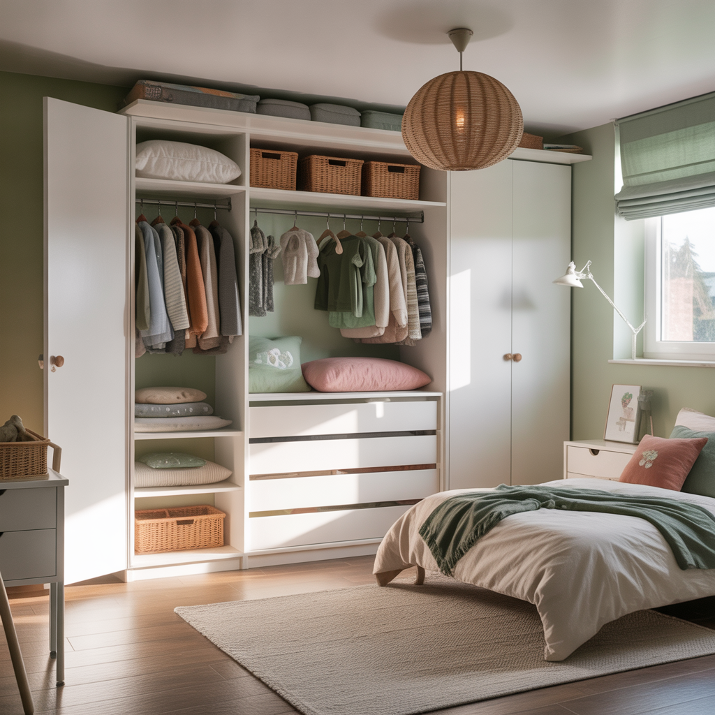 The PAX wardrobe system is a long-term storage investment that grows from childhood into teenage years. Its customizable interior allows shelves, drawers, and hanging space to be arranged according to changing needs.