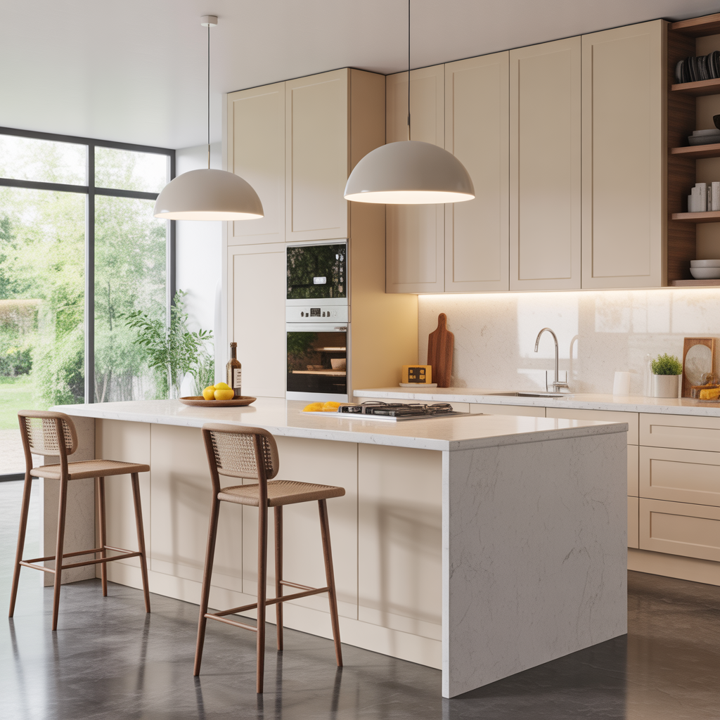 Upgrading from laminate to marble or quartz instantly transforms the entire kitchen. These materials reflect light beautifully and give a premium feel. Even a simple white quartz slab makes cabinets look more refined.