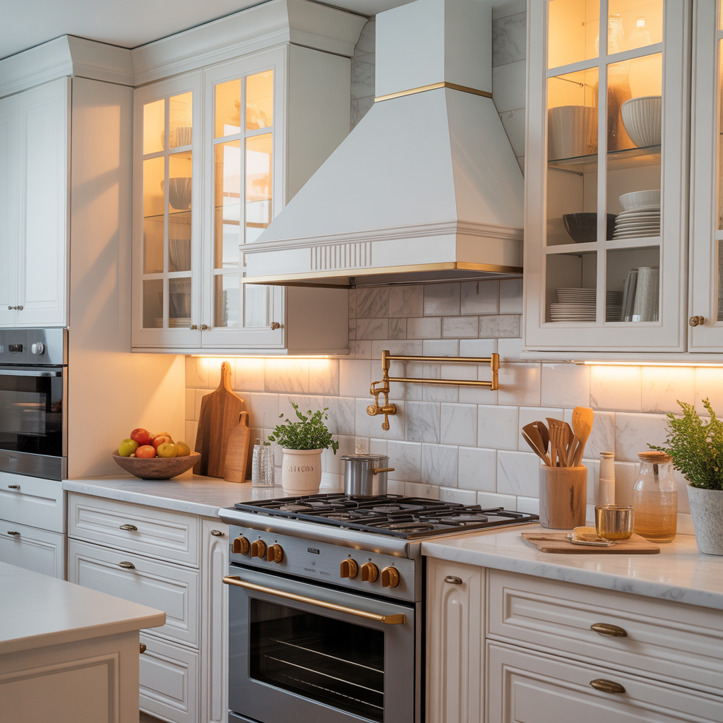 Warm lighting works best for a cozy yet upscale atmosphere. It enhances textures like marble, quartz, or tile and makes your kitchen feel layered and thoughtfully designed. This simple upgrade adds depth and visual interest.