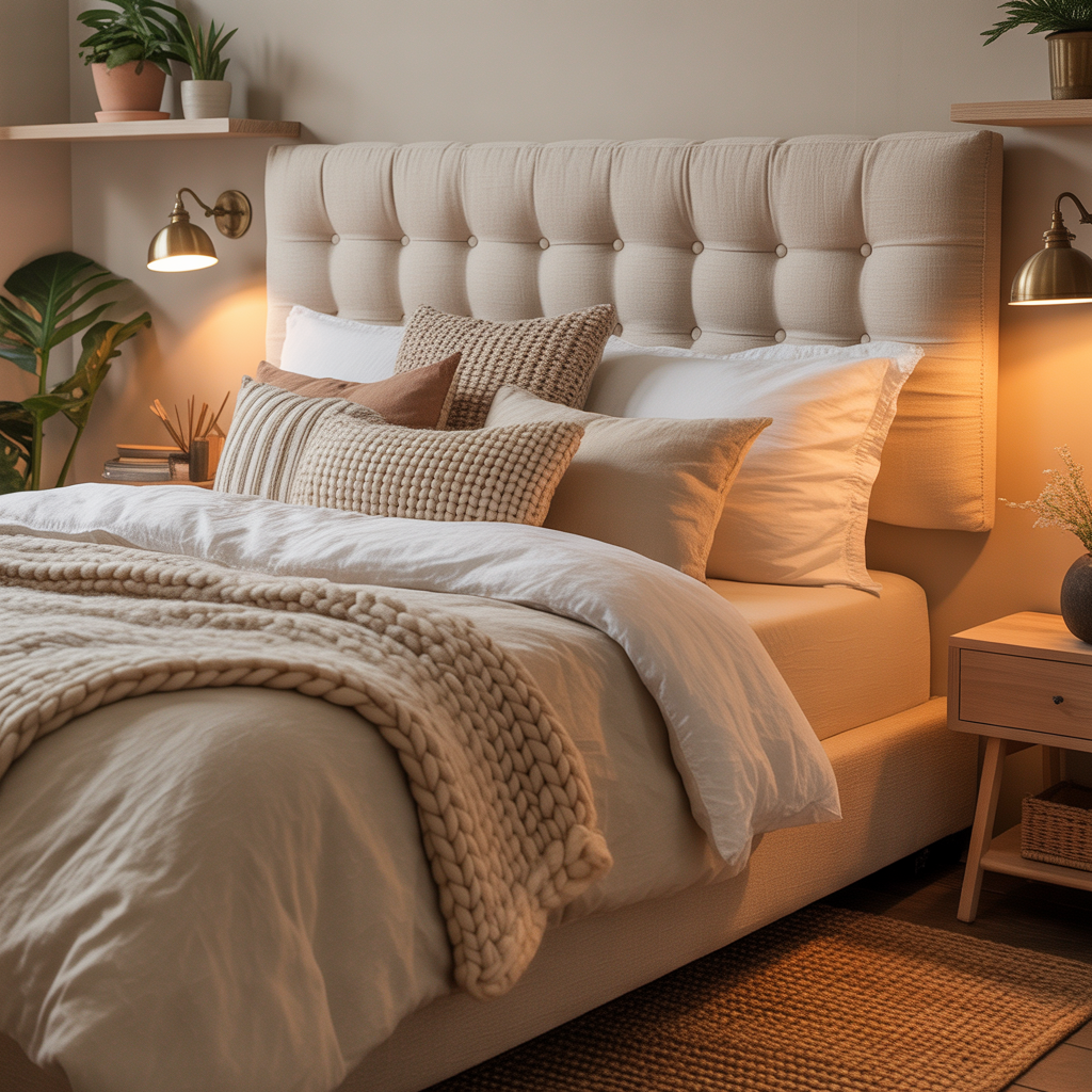 A custom headboard can completely transform a bedroom. You can create one using plywood, foam padding, and fabric for an upholstered look, or wooden panels for a rustic vibe. Choose a fabric that complements your bedding and overall color palette. Tufted designs add elegance, while simple linen creates a modern feel.