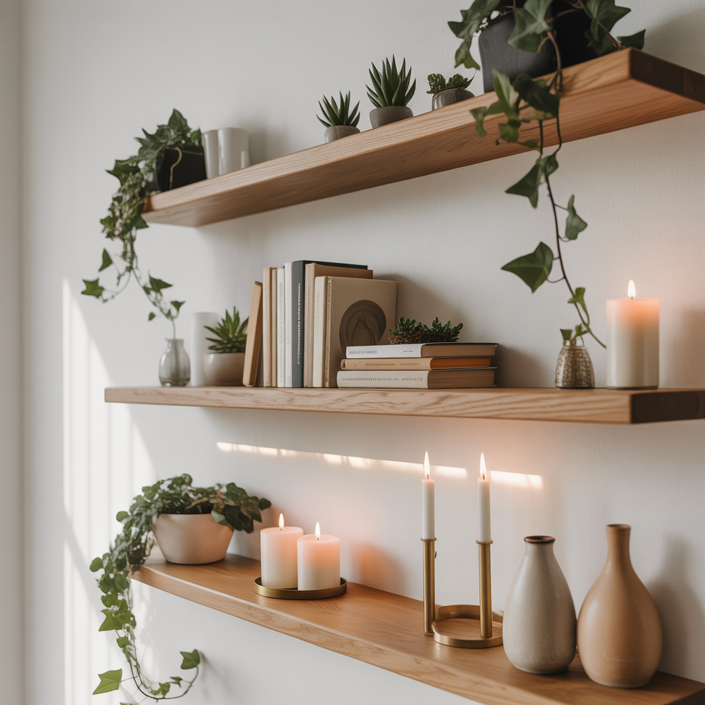These shelves work perfectly in kitchens, bathrooms, bedrooms, or above desks. Style them with layered decor pieces for that curated Pinterest look. Mixing textures like ceramics, greenery, and woven baskets creates visual interest. Not only do floating shelves maximize vertical space, but they also help reduce clutter and elevate your room’s design.