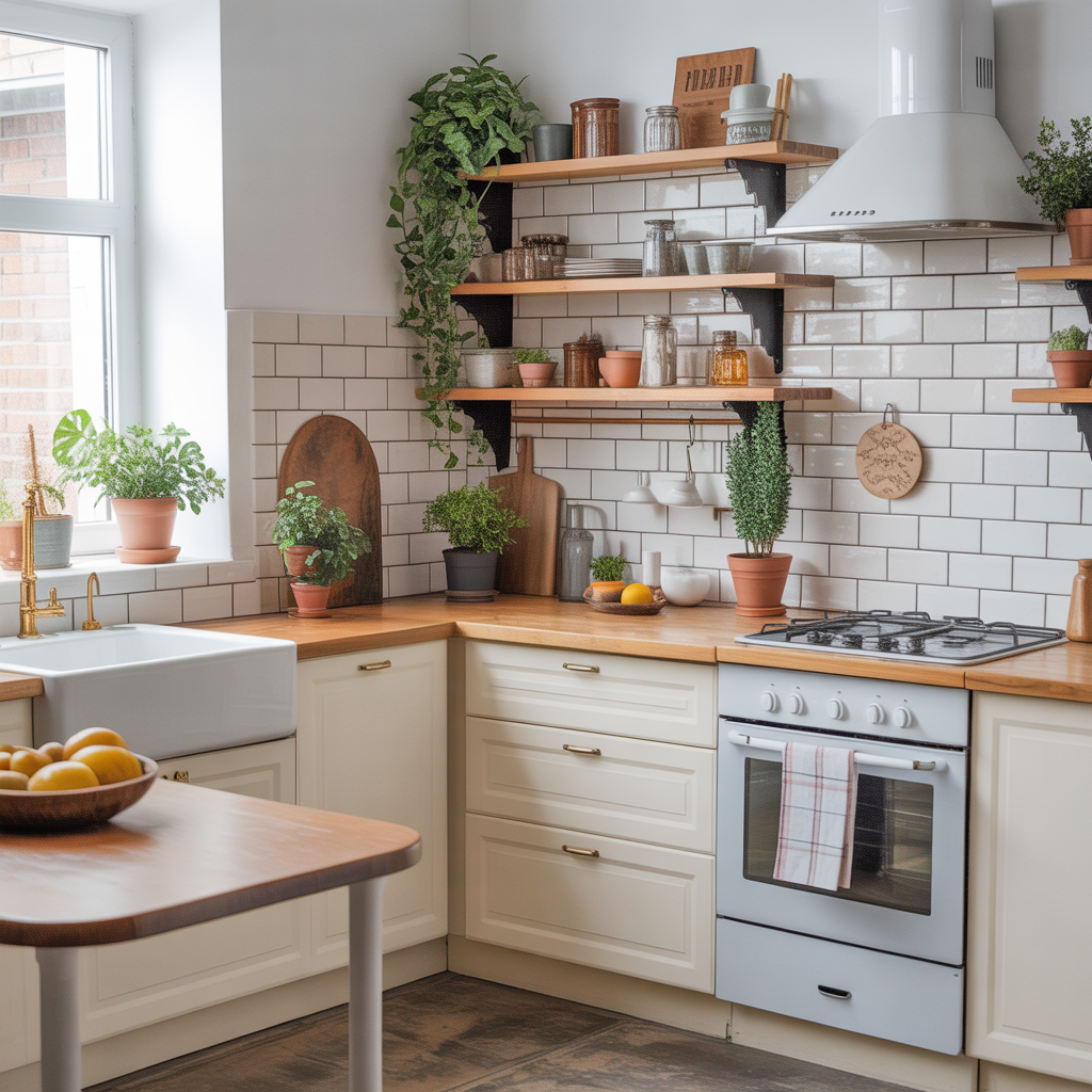 Open shelving encourages you to keep items neatly arranged, which naturally reduces clutter. Styling with coordinated dishware, small plants, and decorative jars adds charm without overwhelming the space. This DIY project works particularly well in small kitchens, making them feel larger and brighter. With thoughtful arrangement and balance, open shelves can transform your kitchen into a Pinterest-worthy focal point.