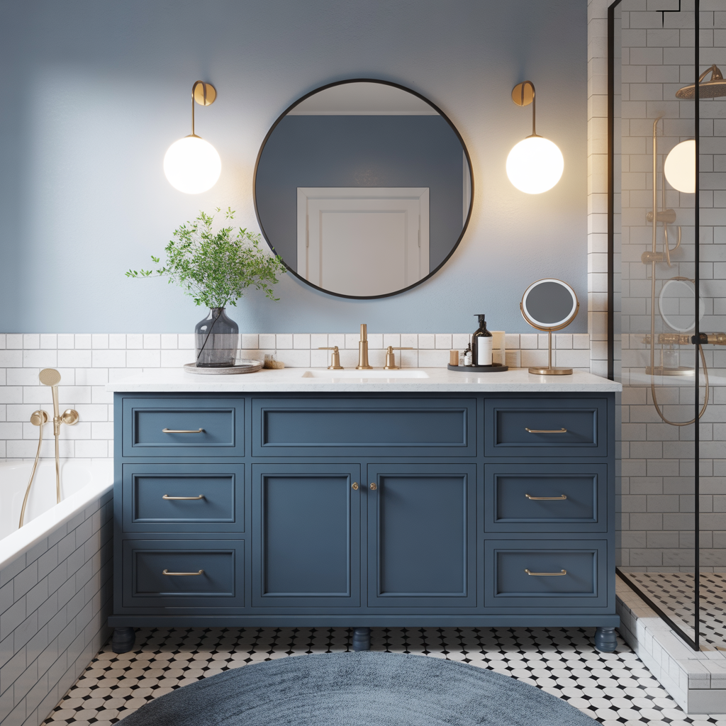 Instead of replacing your entire vanity, give it a fresh makeover with paint and new hardware. Start by sanding and priming the surface before applying a durable paint finish. Soft white, navy blue, or muted green shades can instantly refresh your bathroom. Replacing old knobs with modern matte black or brass handles adds a stylish touch.