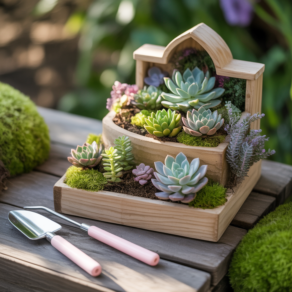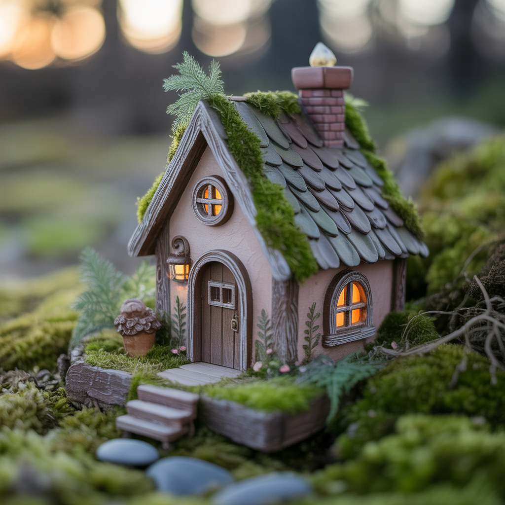 The fairy house is the heart of your garden. It creates a focal point and gives your miniature world a story. You can buy ready-made fairy houses or create one yourself using bark, twigs, clay, or small wooden boxes. Choose a design that matches your theme — rustic woodland, pastel cottage, or even a beach hut. Position the house slightly off-center to create a natural look.