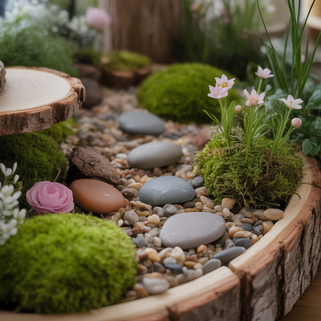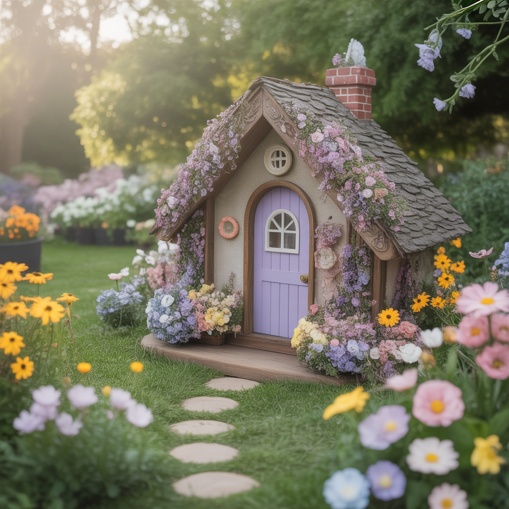 Mini flowers add color, softness, and charm to your fairy garden. You can use small flowering plants like baby roses, alyssum, or tiny artificial blooms for long-lasting beauty. Arrange flowers around the fairy house entrance, along pathways, or near seating areas to create focal points. Mixing soft pastel shades with vibrant pops of color adds visual contrast and depth.