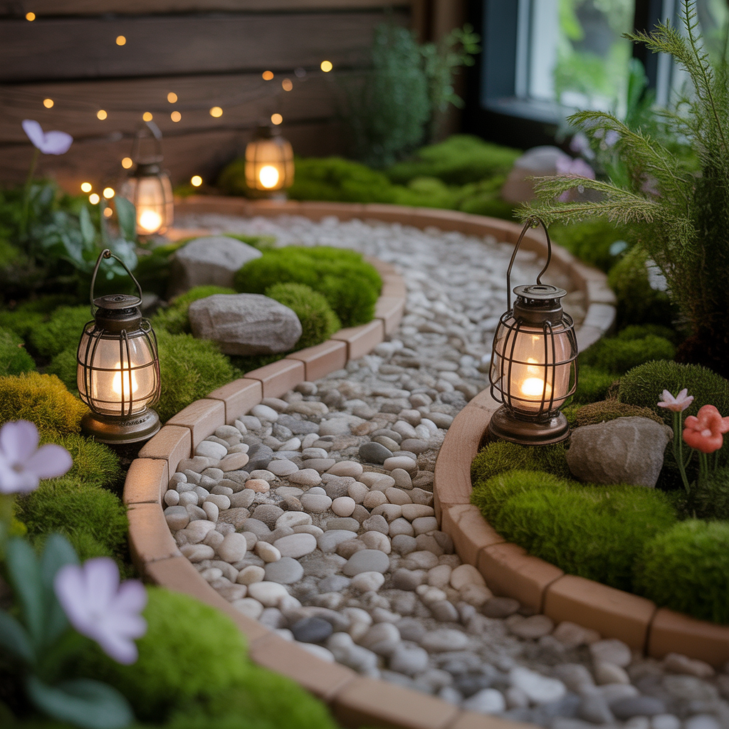 To make it even more magical, line the pathway with tiny flowers, moss, or miniature lanterns. Press the stones firmly so they stay in place when watering. You can also glue pebbles onto a thin cardboard strip if you want a cleaner finish. A well-designed pathway connects different sections of your fairy garden and makes it look like a real tiny village. It’s a simple detail that makes a big visual impact in photos and real life.