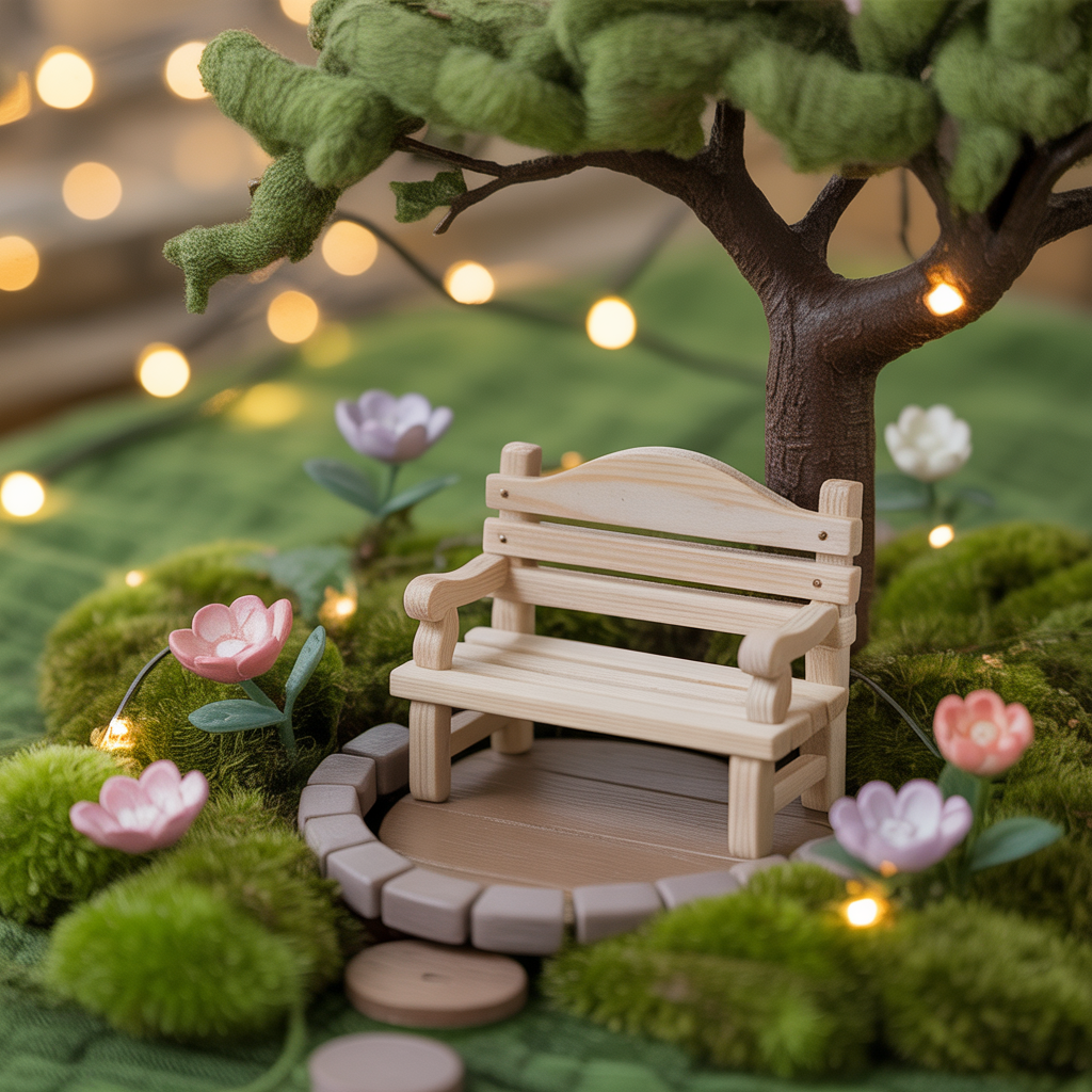 Miniature furniture brings personality and life into your fairy garden. Tiny benches, chairs, tables, swings, or even a small tea set make the space feel lived-in and cozy. You can purchase ready-made pieces or craft your own using popsicle sticks, wire, or clay. Choose furniture that matches your theme — rustic wooden pieces for woodland gardens or white painted chairs for cottage style.